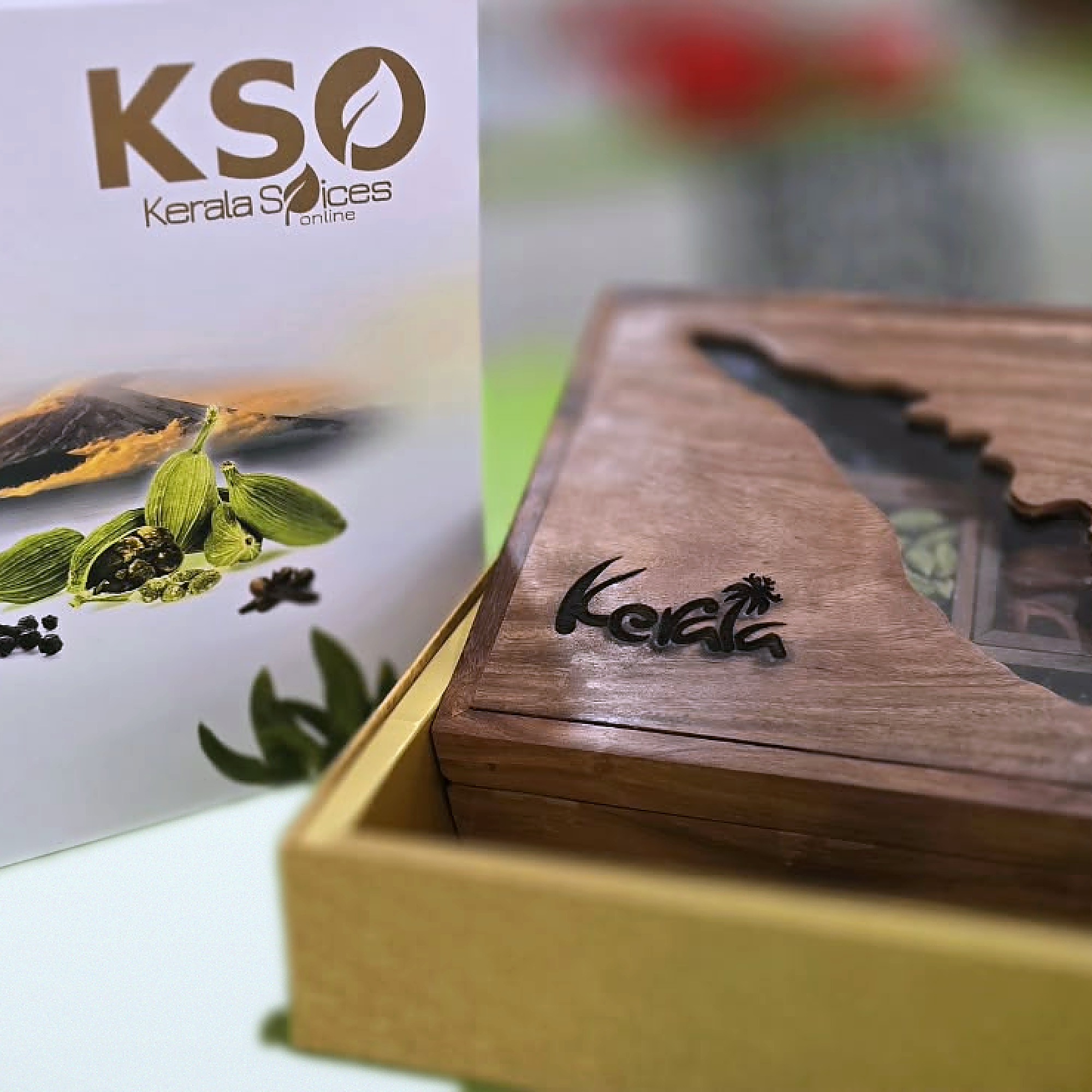 Order today Kerala Wooden Spice Gift Box from Kerala Spices Online — the trusted source for authentic, estate-direct Kerala spices and beautifully designed gifting.