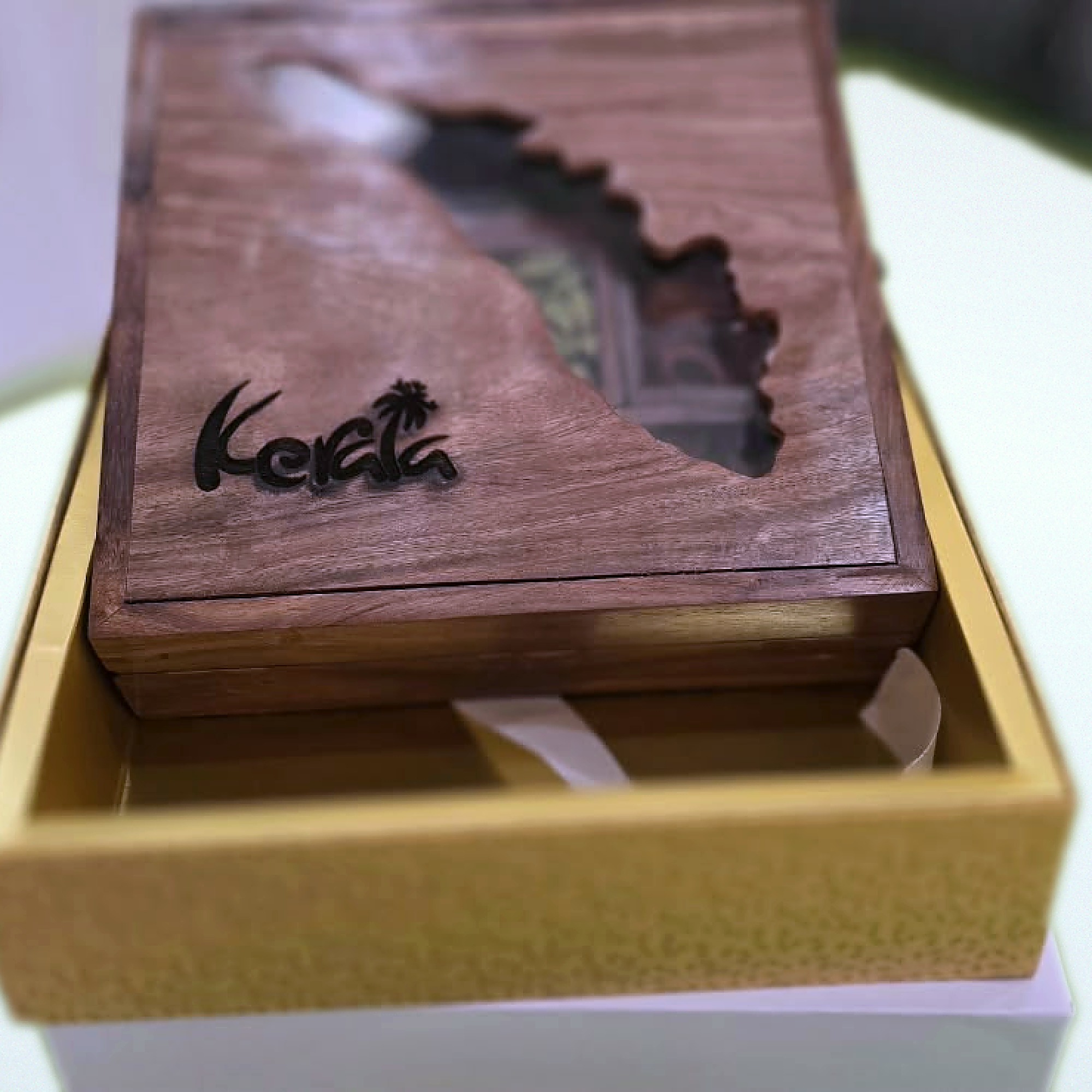 Open the lid and you don’t just see spices — you see a slice of Kerala. Our Kerala Wooden Spice Gift Box is a handcrafted sheesham (Indian rosewood) keepsake, built around a stunning laser-cut glass window in the exact shape of the Kerala map. Through it, the green of cardamom pods, the deep black of Malabar pepper and the burnt-amber of star anise peek out like a postcard from God’s Own Country. It’s a spice box, a conversation piece and a gift, all in one.
